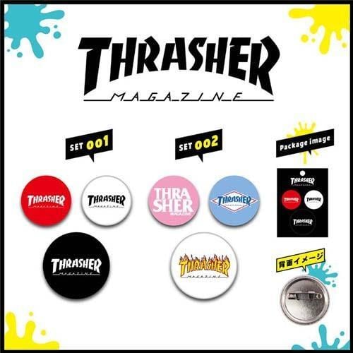 こちらはTHRASHERの缶バッチセットです。