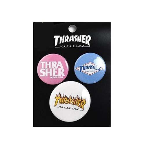 スラッシャー THRASHER ブランド 缶バッチ 3個セット 帽子やカバンに ロゴ入り
