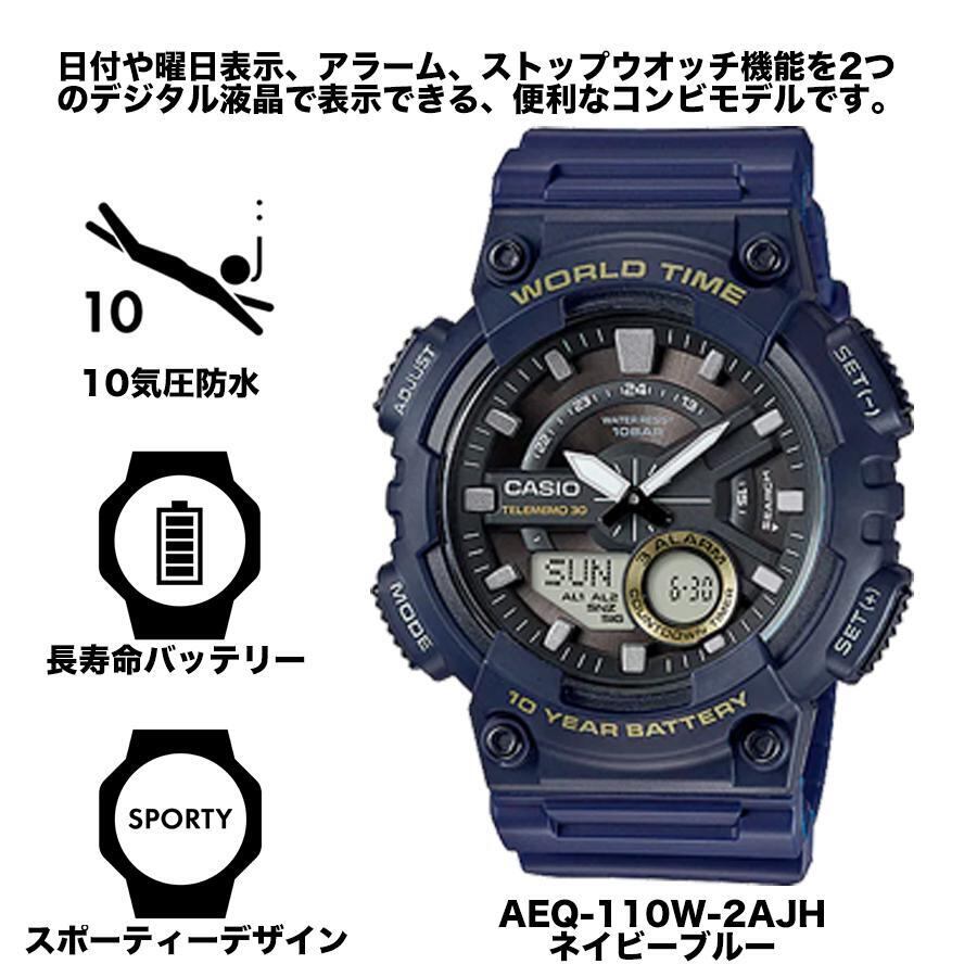 カシオ 腕時計 メンンズ キッズ レディース アナログ デジタル 多機能 10気圧防水 長寿命バッテリー ワールドタイム ストップウォッチ アラーム 電話帳機能