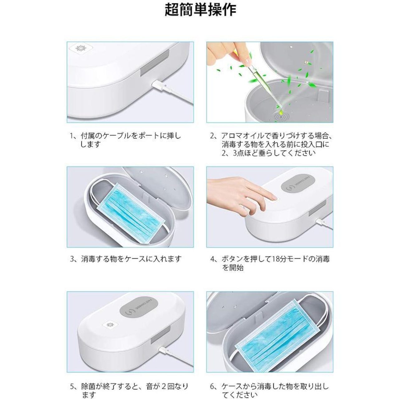 除菌したいものを約30分間ケースに入れるだけで最大99.9%の除菌が可能です。