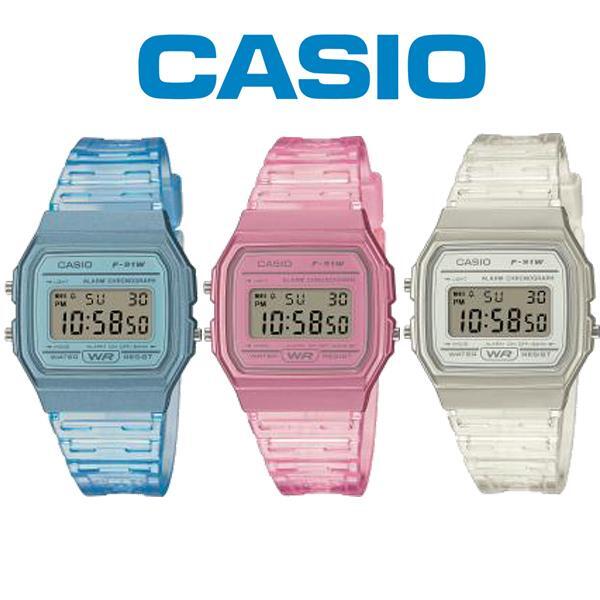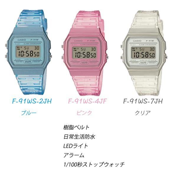 カシオ F-91WS キッズ レディース 腕時計 クリア ピンク ブルー デジタル カレンダー ストップウォッチ アラーム チプカシ F-91WS-2JH F-91WS-4JH F-91WS-7JH