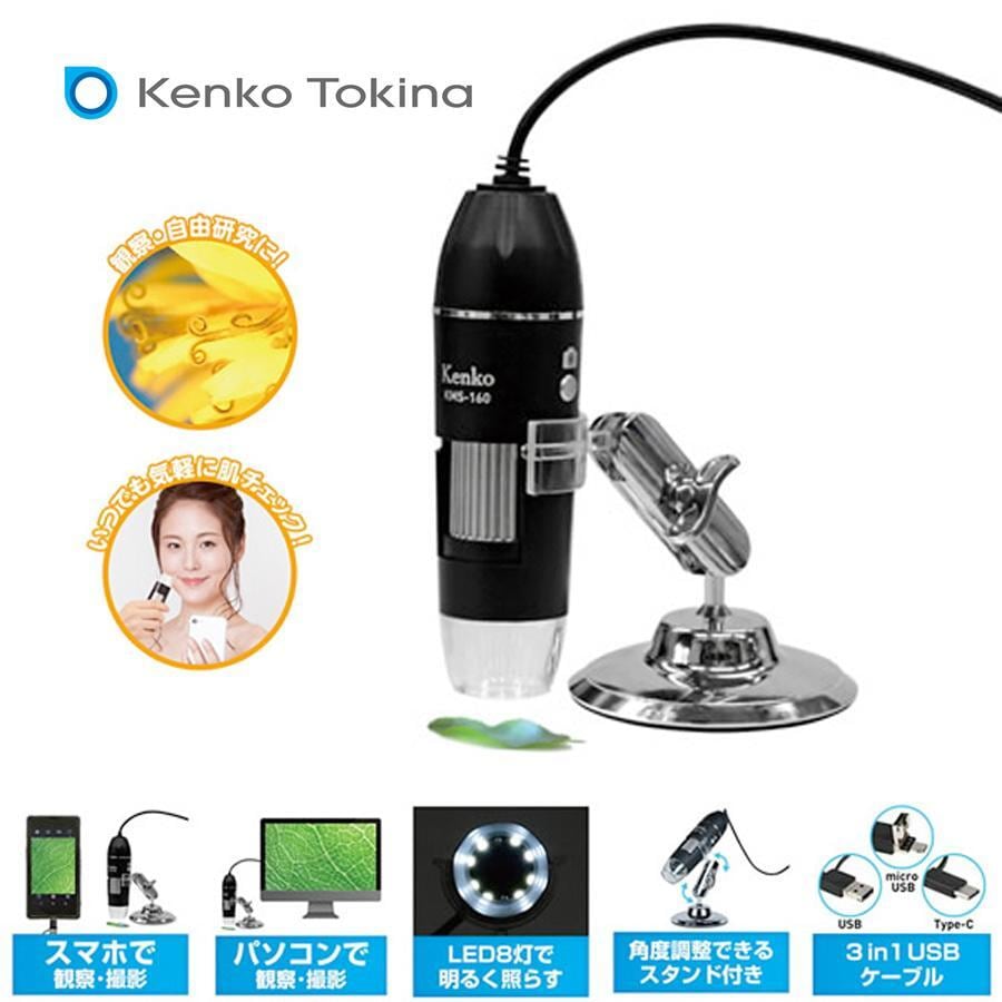 スマホで使える 顕微鏡 最大倍率164倍 スタンド付き LEDライトパソコン スマートホン 対応 静止画 動画撮影 小型 軽量